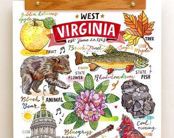 West Virginia Print State Symbols Illustration Map Etsy India